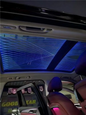 Ce produit est un système d'éclairage d'ambiance haut de gamme spécialement conçu pour l'intérieur des voitures. Il comprend un éclairage d'ambiance intérieur, un plafonnier ciel étoilé et un film pour toit ouvrant panoramique. Solution complète pour sublimer l'ambiance de votre voiture, il est compatible avec la plupart des modèles. Grâce à une technologie sophistiquée à fibre optique, un ciel étoilé éblouissant, semblable à une galaxie, est projeté sur le toit. Vous pouvez ajuster la couleur et le mode de la lumière étoilée selon votre humeur, sublimant instantanément le style et l'atmosphère romantique de votre intérieur, offrant aux conducteurs et aux passagers un plaisir visuel et une expérience immersive sans précédent.